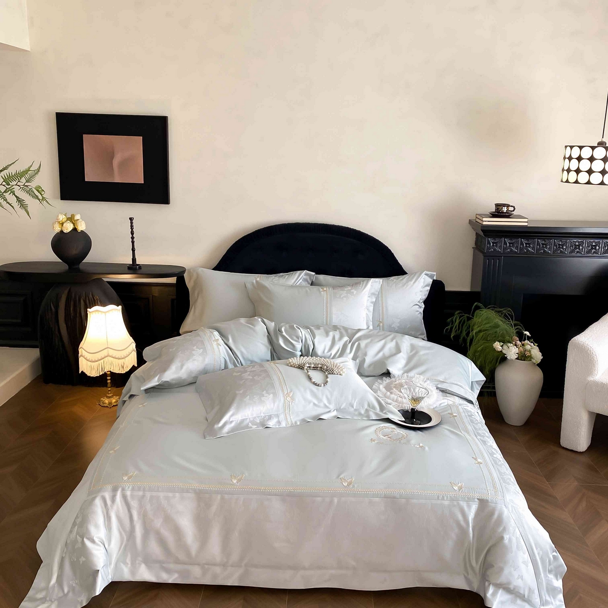 当前位置: 太古汇家居> 产品中心 > 2025新款长绒棉高精密提花+绣花四件套“星辰梦蝶”系列